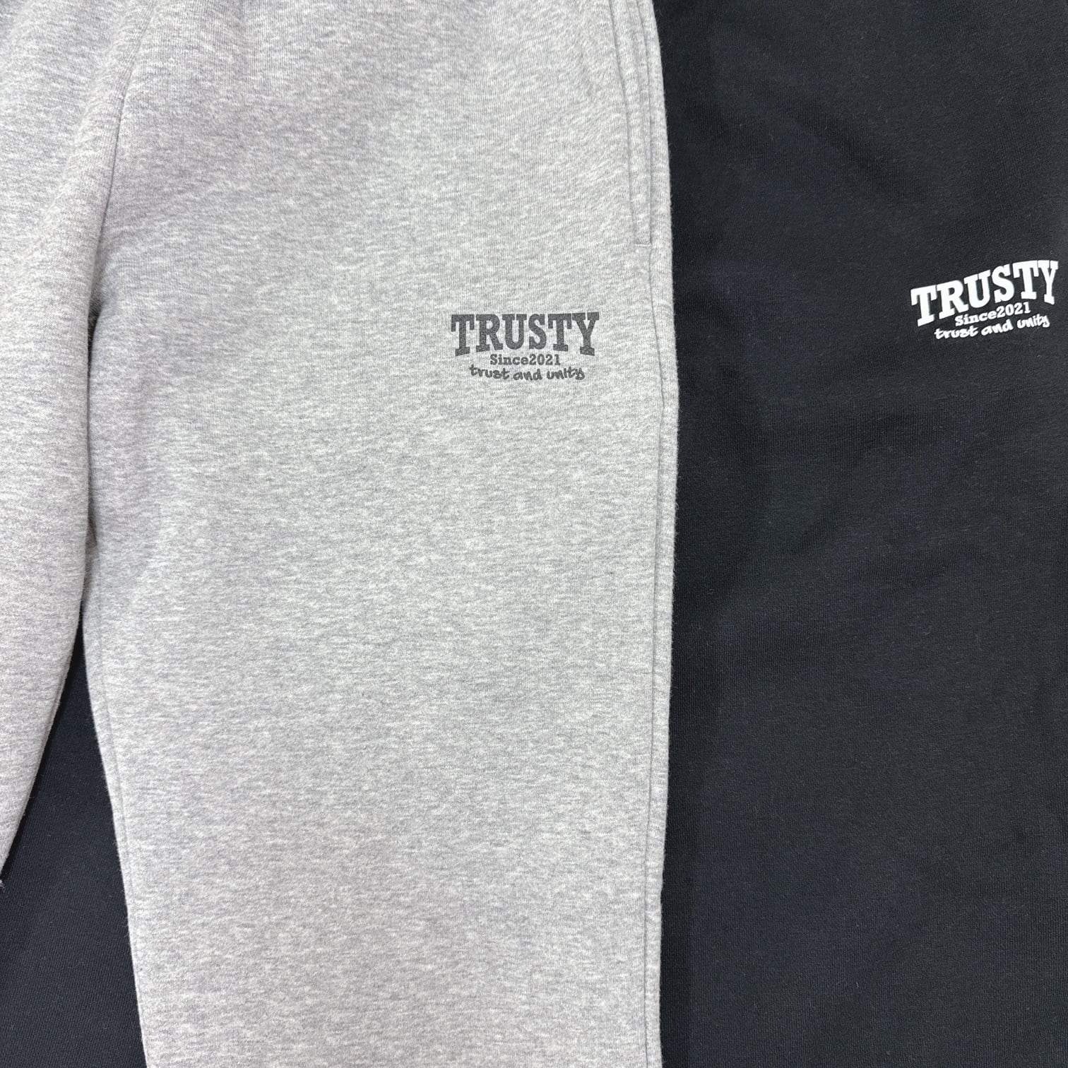 フロントにシンプルなtrustyのロゴがプリントされたスウェットパンツです!